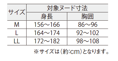 身長:172cm〜182cm、胸囲:98cm〜108cm