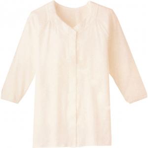 高齢者の体型に合わせ後身ごろの丈と巾を広くした立体パターンで、裾が開かないようにお腹周りもゆったりしています。