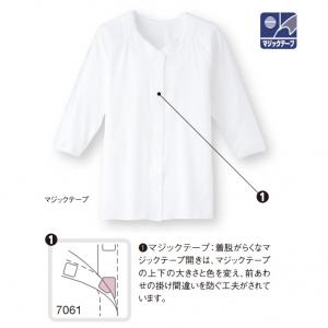 着脱がらくなマジックテープ開きは、マジックテープの上下の大きさと色を変えるなど、前あわせの掛け間違いを防ぐ工夫がされています。