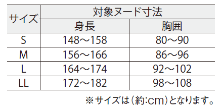 身長:172〜182cm 胸囲:98〜108cm