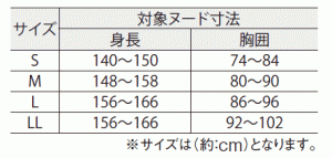 L 身長:156〜166cm 胸囲:86〜96cm