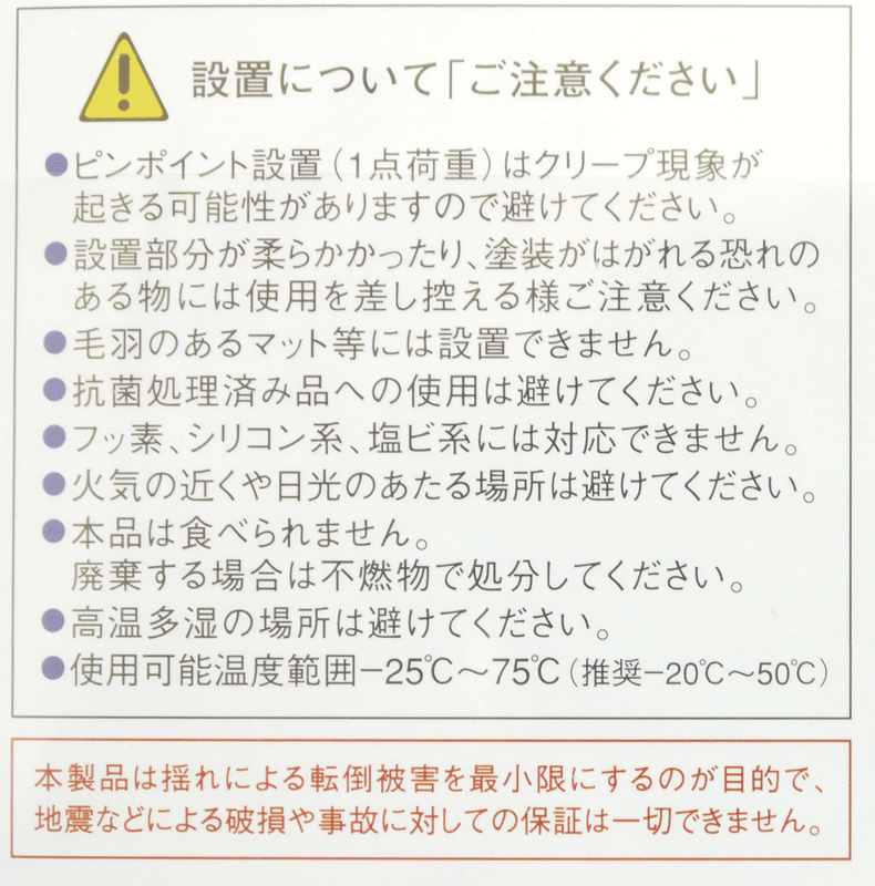 - 地震対策はこれでOK!何度もはがせて使えます。