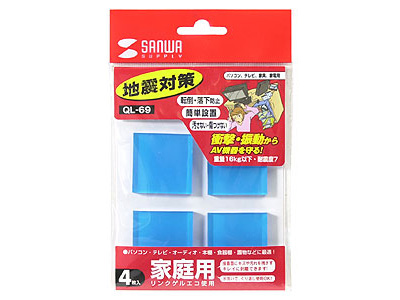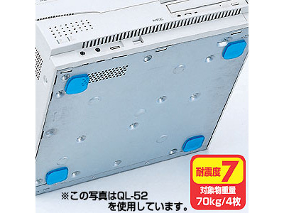 - 耐震性は単純に機器の重量だけでなく、形状・重心・設置面の素材(設置面の素材により粘着力が変わる為)等により決まりますので、耐震性を高める為にはできるだけ設置面の広い面積で本製品をお使いください。