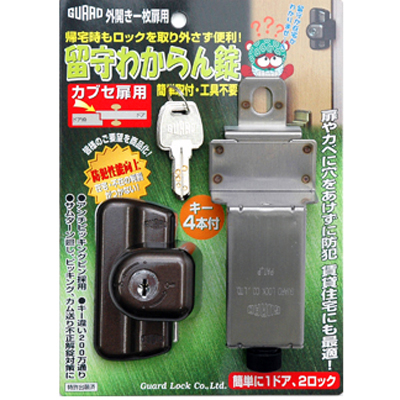 防犯グッズ玄関ドア用補助錠 留守わからん錠(カブセ扉用) No.556