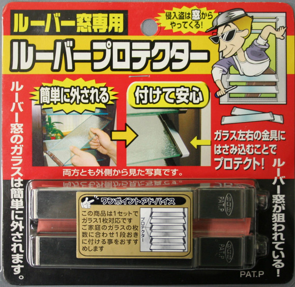 • このルーバープロテクターはルーバー窓での犯行手口の多いと言われるガラスを室外より外して侵入する手口を未然に防ぐ画期的な商品です。