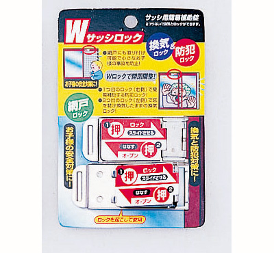 - 換気ロック、クレセント錠との併用による防犯ロックを目的とした簡易サッシ用補助錠。