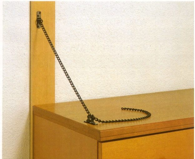 | (2) | チェインのねじれをとり、回転金具にチェインを通し、たるまないように、しっかりビス止めします。 |