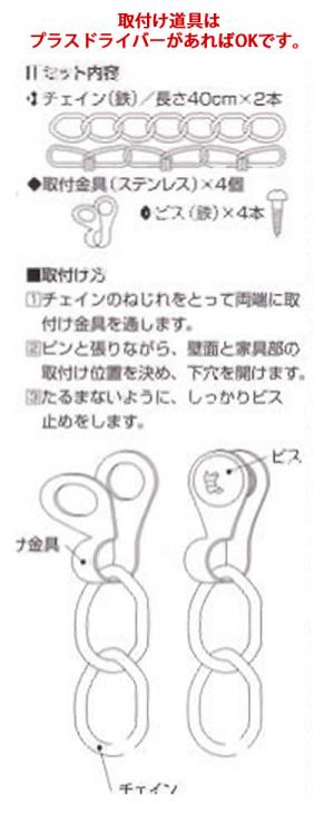 HOME > 防災グッズ > 家具転倒防止用品 > 転倒防止チェーン