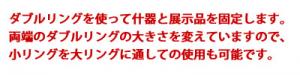 (1) ダブルリングを使って什器と展示品を固定します。