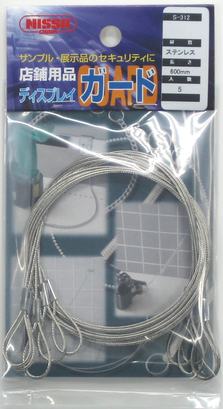 防犯グッズニッサ ディスプレイガードS-312 60cmステンレスワイヤー 5本入