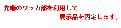(1) 先端のワッカ部を利用して展示品を固定します。