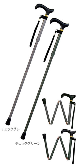 シンプルなチェック柄、シックでな折りたたみ式伸縮ステッキ。