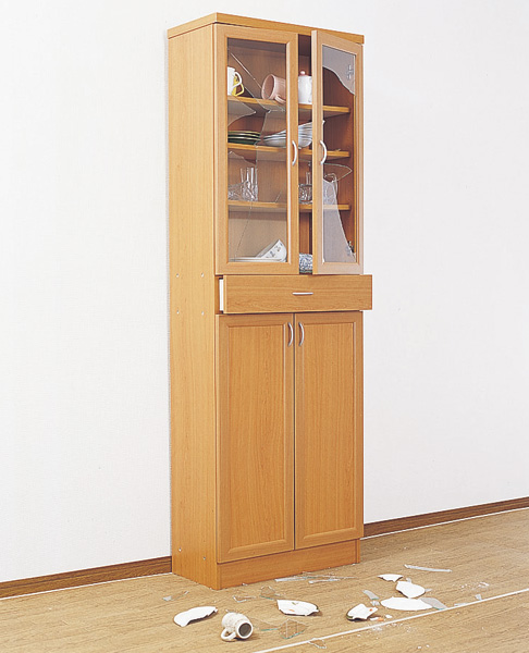 • 家具や食器棚等の下部の前面に差し込み、家具の重心を壁面側に移し転倒しにくくする商品です。
