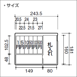 大変便利なコインカウンター付きのトレーを採用。カウンター部分には10枚ごとに刻みが付いているので、コインの枚数を数える手間を省きます。