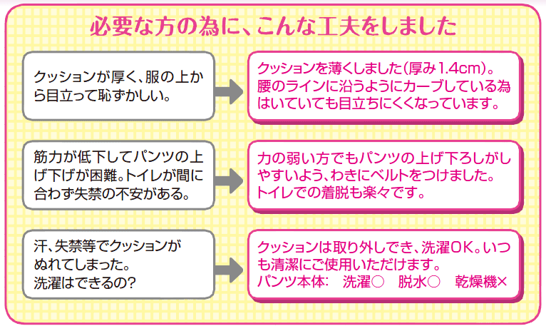 ウエストゴムの交換穴が付いているので、サイズ調整・交換ができます。
