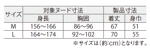 サイズ M 身長:156cm〜166cm、胸囲:86cm〜96cm