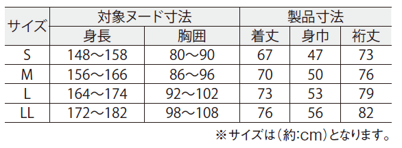 LL 身長:172〜182cm 胸囲:98〜108cm