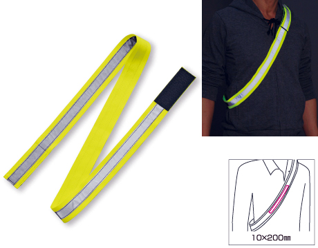 車のライトを強力に反射するたすきです。