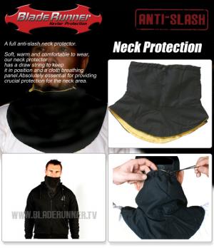 - Tシャツや防刃ベストだけではガードできない首周りをしっかりと保護します。
