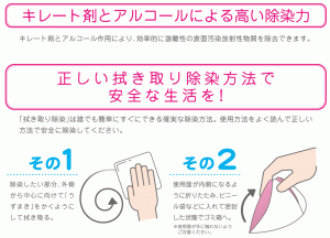 - 本製品はキレート剤とアルコールを含んだ除染ウェットシートです。