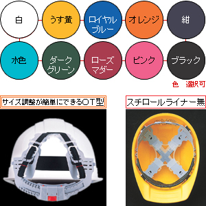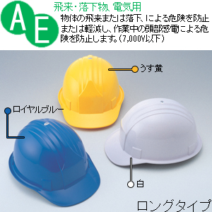 ここは空白です 軽量ヘルメット。飛来・落下物用+電気用。サイズ調整簡単OT型ロングタイプ。