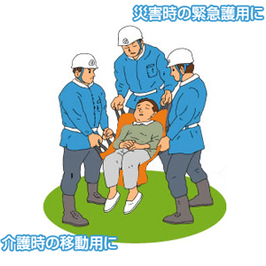 ここは空白です 災害時にも介護にも使用できる万能担架です。