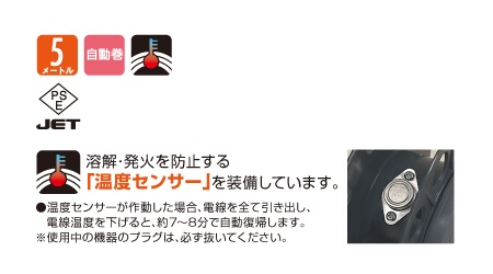 | 電線仕様 | 耐熱ゴムコード1.25mm2×2心(許容電流:12A) |