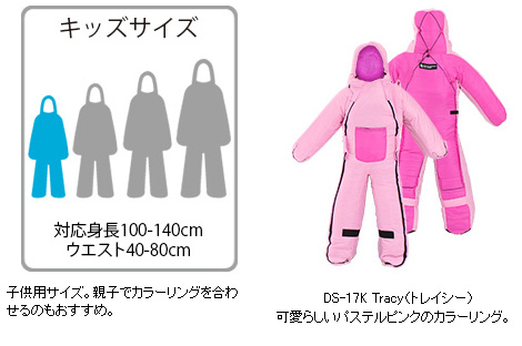 商品名 【在庫限り】人型寝袋ヒューマノイドスリーピングバッグ(ピンク/パステルピンク)DS-17K Tracy(トレイシー) キッズサイズ