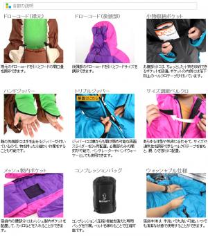 • マミー型寝袋の窮屈感を解消し、寝袋とは思えない快適な寝心地を提案、ファンシーなルックスでアウトドアシーンや近年盛んな野外フェスをもっと楽しく盛り上げます。