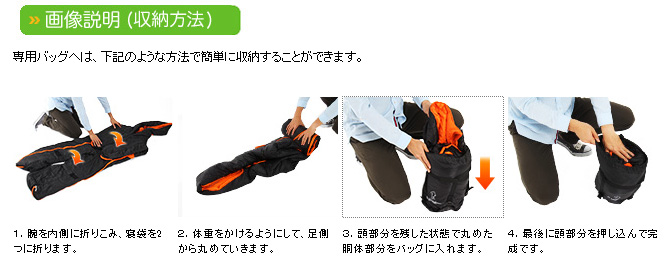 • 寝袋の機能をそのままに、人型にデザインしたヒューマノイドスリーピングバッグ(R)。