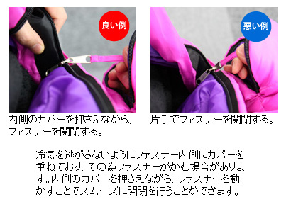 • ※3 推奨使用温度とは、睡眠がとれる温度帯の目安です。あくまで、計算上の数値で、風速、湿度、服装などの使用条件や体質などにより体感温度には個人差があります。目安としてご検討ください。 寒い時にご利用いただく場合は、暖かい服装や毛布、キャンピングマットなどのご用意をおすすめいたします。