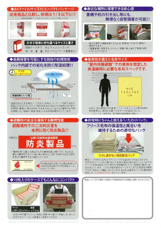 商品名 災害備蓄用毛布 難燃フリースコンパクトタイプ BAP-3000B