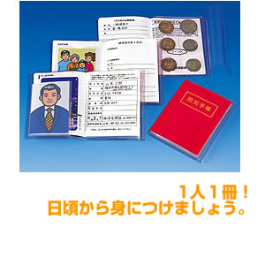 万一、災害に遭遇したときのために身につけておきたい一冊。防災手帳は災害時に必要な本人や家族の情報が書き込め、それぞれの写真も入れられます。