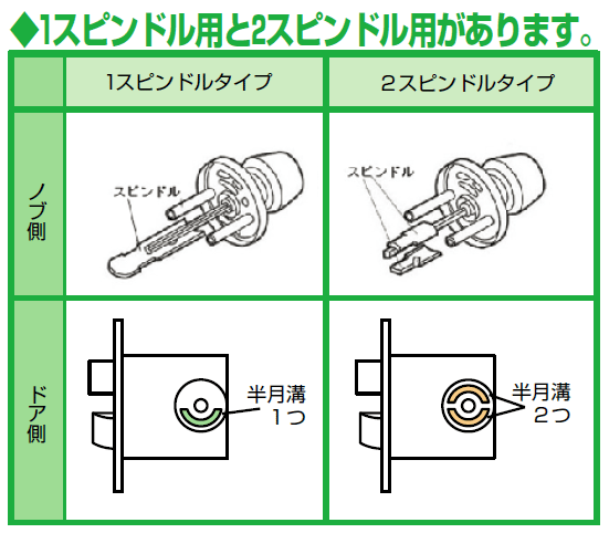 • ドアノブをはずして、1スピンドルタイプであれば「LS-100」を、2スピンドルタイプであれば「LS-200」をお選びください。