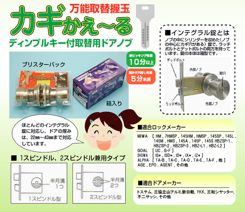防犯グッズディンプルキー付取替用ドアノブ GMD-500 箱入り