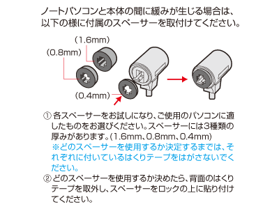 | セット内容 | 本体×1 鍵×2 スペーサー×3(厚み3種類、各1個) |