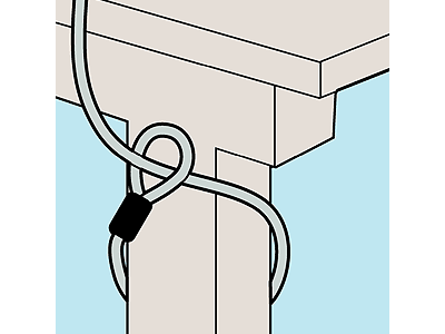 1. ワイヤーを机の脚などに巻き付けます。