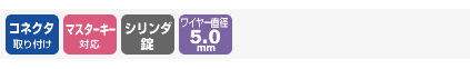 ワイヤーと一体型のシリンダ錠で着脱が簡単です。