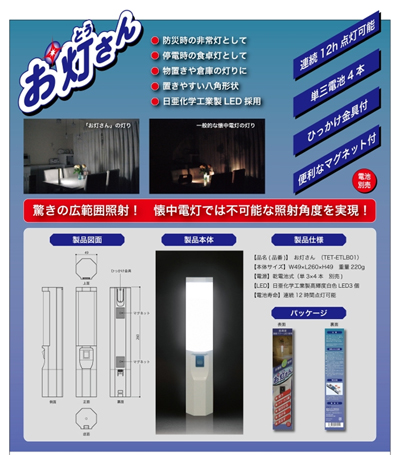 商品名 多機能LED照明 お灯さん(おとうさん)