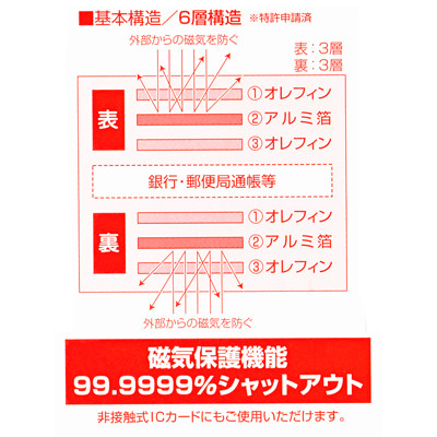 • 表3層・裏6層の合計6層構造により外部からの磁気を防ぎます。