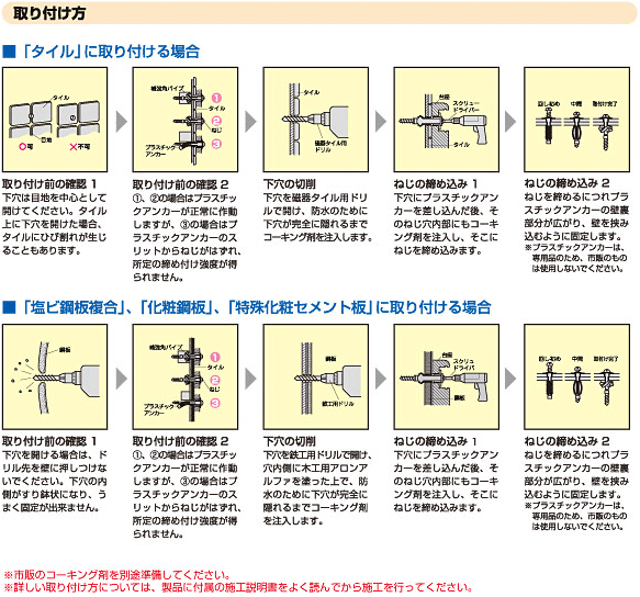 ここは空白です 壁面に柱のない薄いユニットバスの壁(10mm前後)に後付けできます。