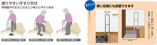 • 狭い玄関での段差昇降をより安全にサポートします。