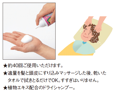 乾いたタオルで拭きとるだけで、サラッと仕上がる泡状シャンプーです。