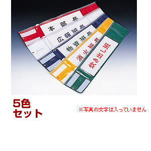防災グッズワンタッチ腕章 5色セット 【黄・緑・赤・白・青】 (差し込み式・マジックテープと安全ピン留め)
