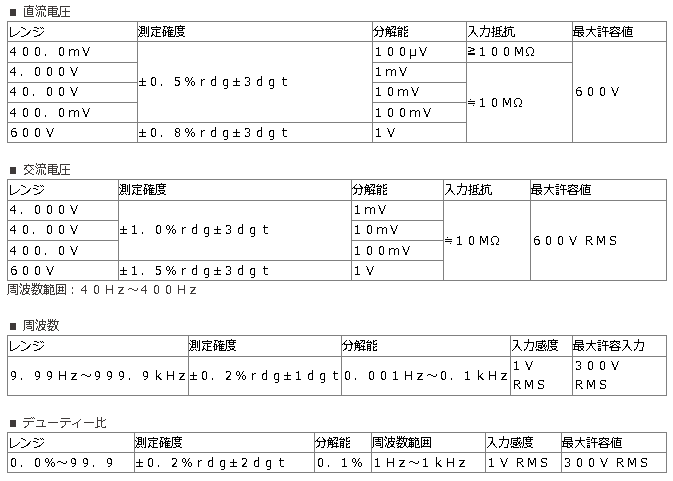 • 4000カウント表示。オートレンジ。