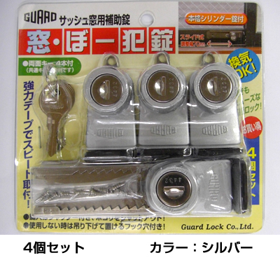 商品名 サッシ窓用補助錠 窓ぼー犯錠 シルバー4個セット No.540-4S