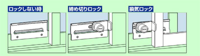 • 窓を少し開けた状態でロックする事ができ、換気に便利。