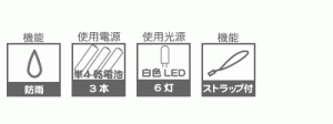 YAZAWA LEDミニフラッシュライト 6灯 単4×3本 LL37PW