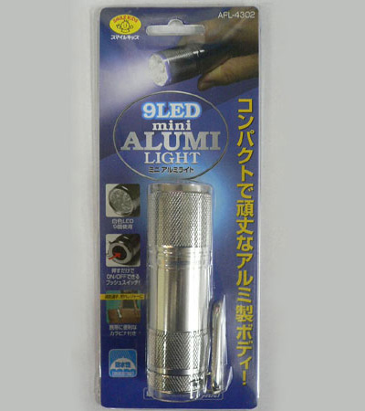 - 単4形乾電池使用のアルミ製9LEDライト