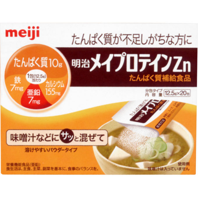 | 原材料 | 乳清たんぱく質、デキストリン、カゼインNa、炭酸Ca、ピロリン酸鉄、レシチン(大豆由来)、グルコン酸亜鉛 |
